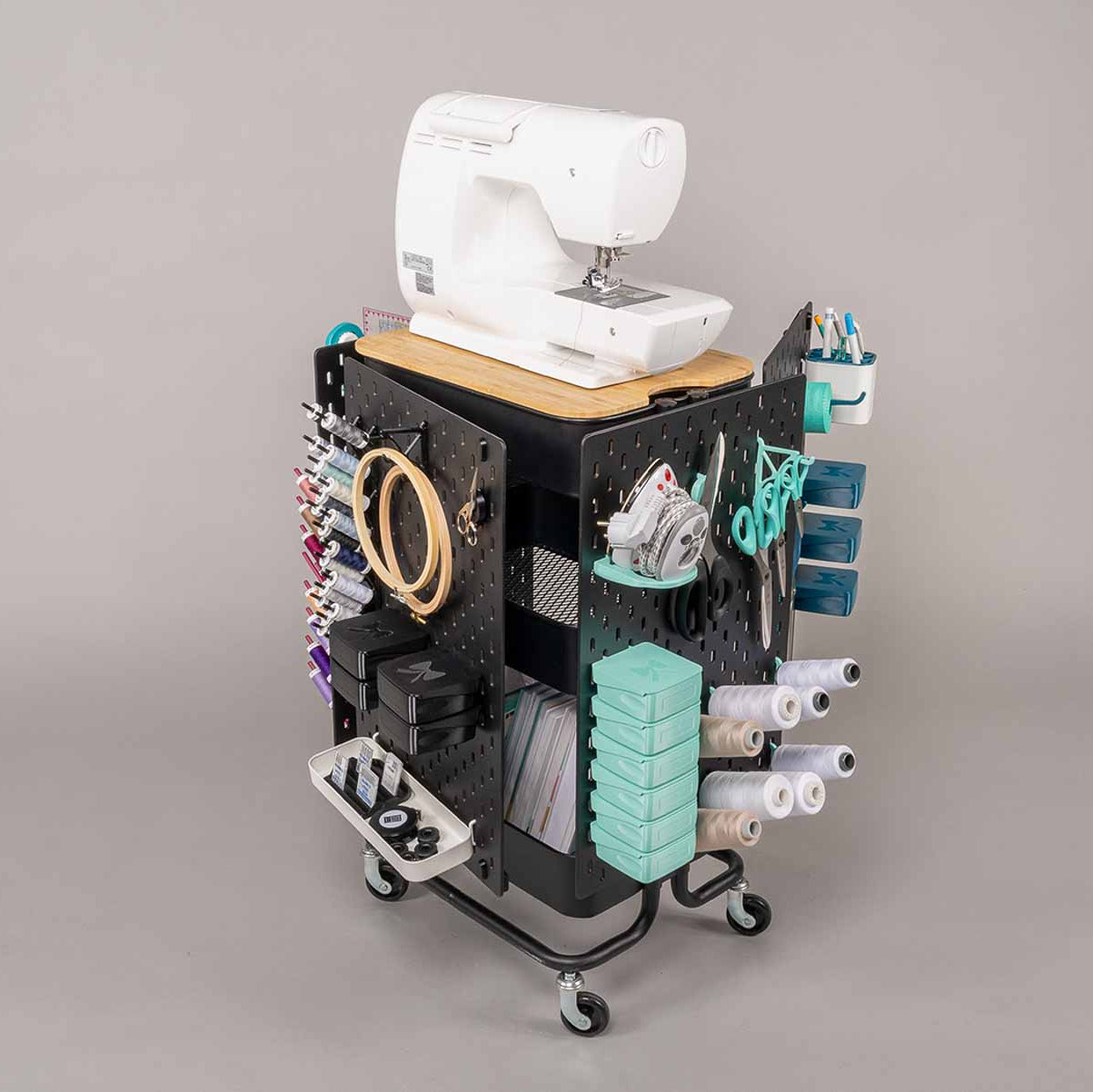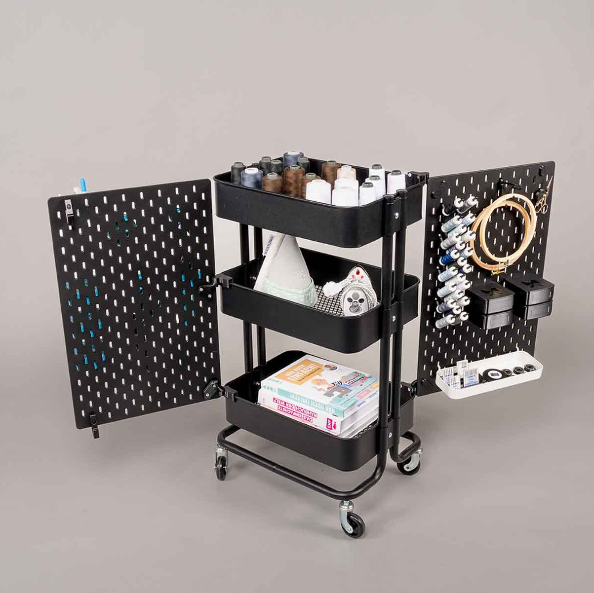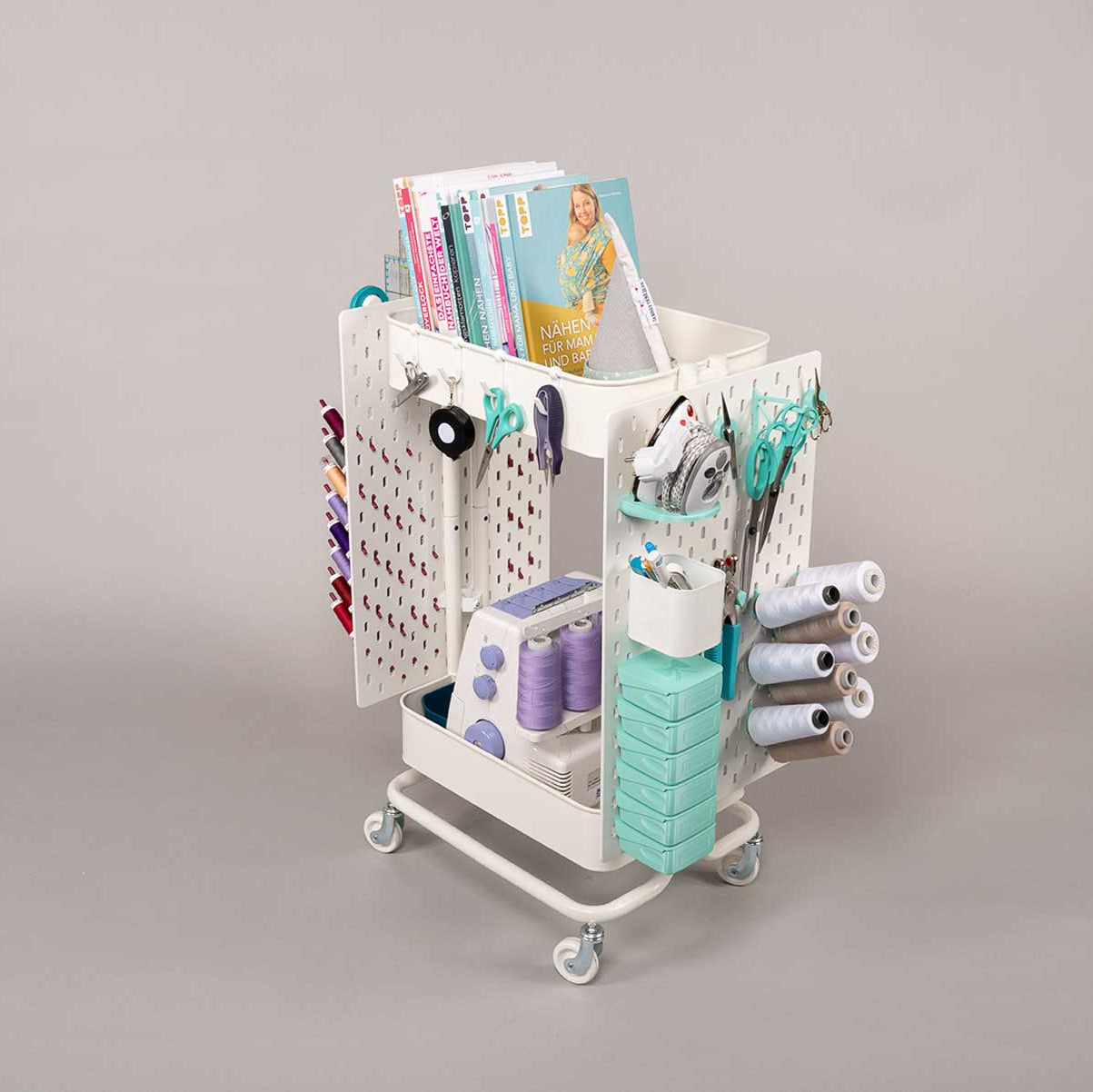 Das "Sew Mobile Verbindungskit seitlich" dient dazu, die IKEA SKADIS Lochplatte an den kurzen Seiten des IKEA RÅSKOG Servierwagens zu befestigen.