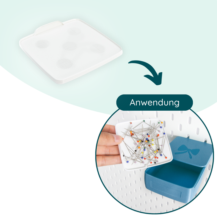 Alle Nähutensilien lassen sich übersichtlich an einem Ort verstauen und sind jederzeit griffbereit. So verschwindet das Chaos, der Kopf bleibt frei für neue Nähprojekte und der Nähplatz macht wieder Freude.