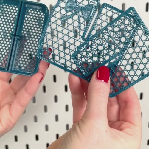 Der Schnittenliebe Sew OrgaNiced Behälter Organizer bringt Ordnung in den Skadis Behälter von IKEA. Du kannst ihn flexibel in 2 oder 4 Fächer unterteilen, um dein Nähzubehör und Kleinteile übersichtlich zu verstauen. Dank des Gitter-Designs siehst du jederzeit, was sich im Behälter befindet. Die Trennwand hat zudem eine Aussparung für eine Magnetsicherung, damit der Behälter auch bei schwerem Inhalt sicher an der Wand hält.