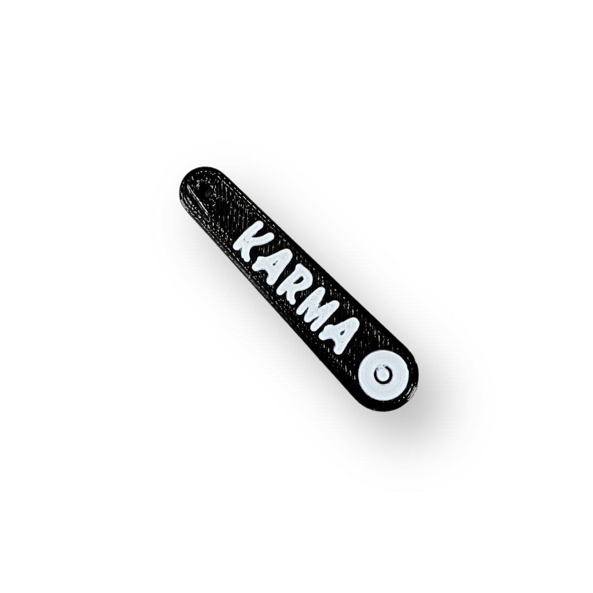 Unsere 3D-gedruckten Reißverschlussanhänger aus TPU mit dem Motiv „Schriftzug KARMA“ sind flexibel, robust und vielseitig einsetzbar.