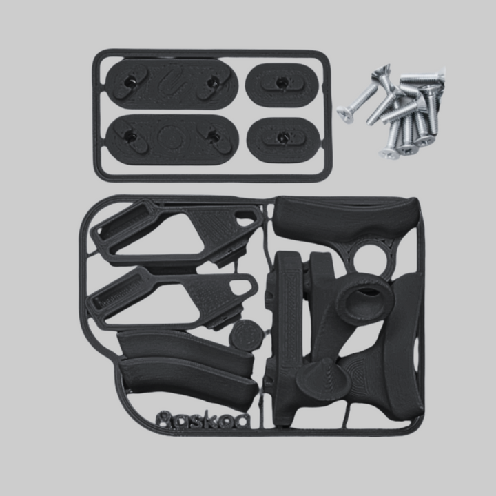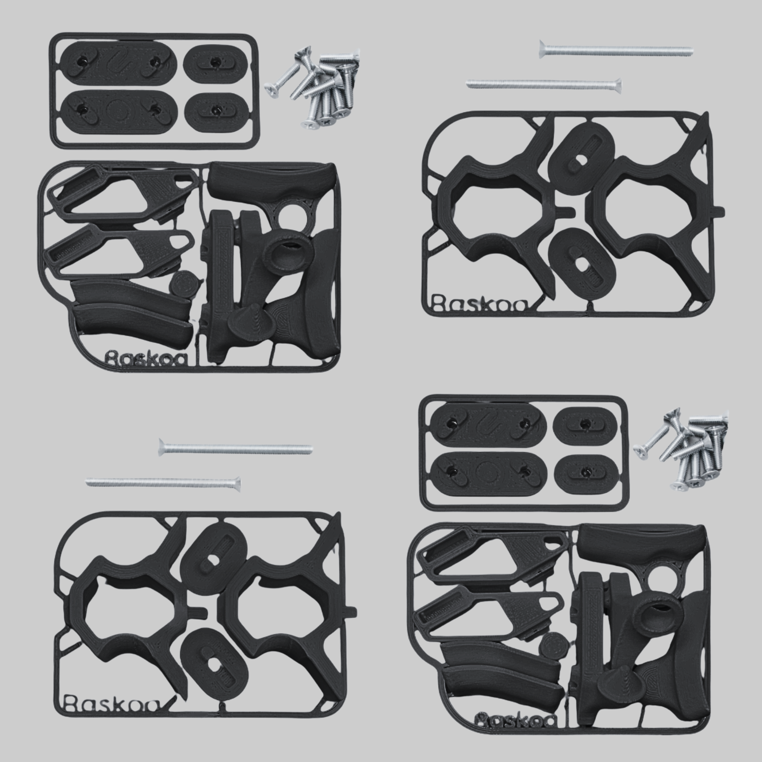 two parts for mounting between the bars: 5.5 cm x 6.8 cm x 2.0 cm