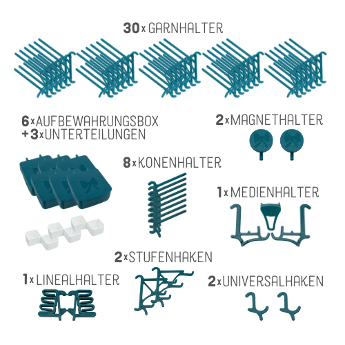 Ein für dich sorgfältig zusammen gestelltes Set bietet dir die Möglichkeit, schnell und unkompliziert neue Aufbewahrungsmöglichkeiten für dein Nähzubehör an der IKEA Skadis Lochplatte zu schaffen. Zusätzlich zum Set kannst du jederzeit einzelne Produkte hinzufügen, die für deinen individuellen Nähplatz passend sind.