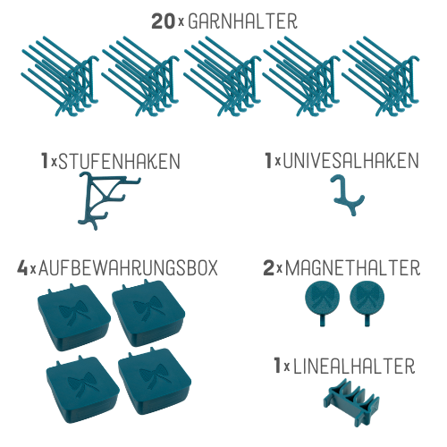 Ein für dich sorgfältig zusammen gestelltes Set bietet dir die Möglichkeit, schnell und unkompliziert neue Aufbewahrungsmöglichkeiten für dein Nähzubehör an der IKEA Skadis Lochplatte zu schaffen. Zusätzlich zum Set kannst du jederzeit einzelne Produkte hinzufügen, die für deinen individuellen Nähplatz passend sind.