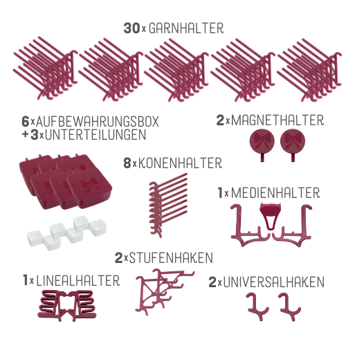 Ein für dich sorgfältig zusammen gestelltes Set bietet dir die Möglichkeit, schnell und unkompliziert neue Aufbewahrungsmöglichkeiten für dein Nähzubehör an der IKEA Skadis Lochplatte zu schaffen. Zusätzlich zum Set kannst du jederzeit einzelne Produkte hinzufügen, die für deinen individuellen Nähplatz passend sind.