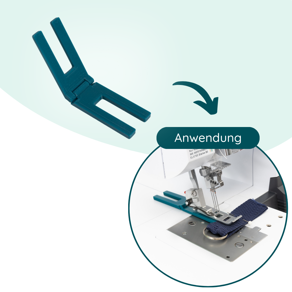 Avec le compensateur de hauteur Schnittenliebe (également appelé Hebamme), tu peux venir à bout de toutes les épaisseurs de tissu sans effort tout en obtenant un beau résultat de couture. La machine à coudre peut parfois poser des problèmes, en particulier pour les couches de différentes hauteurs (sweat -> jersey) ou pour plusieurs couches de similicuir. Il te suffit de placer le compensateur de hauteur à la hauteur nécessaire sous ton pied-de-biche et de continuer à coudre comme d'habitude.