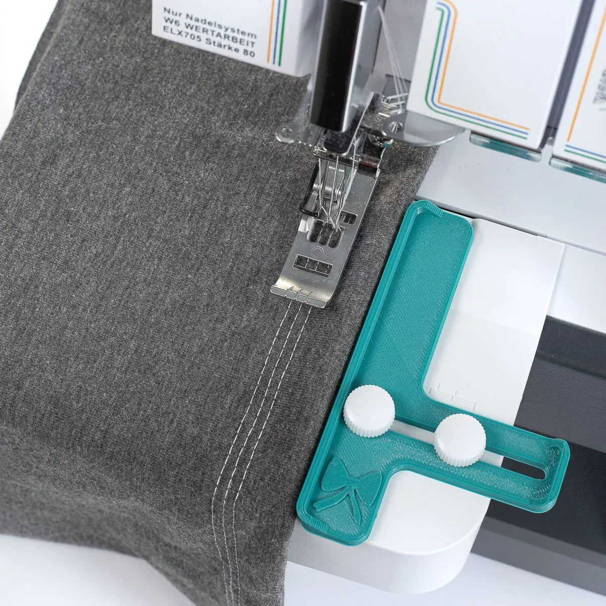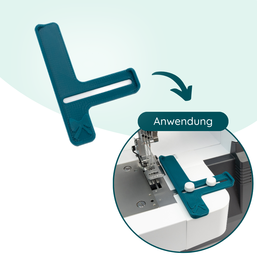 Notre guide d'ourlet est conçu pour s'adapter à presque tous les modèles courants de Coverlock. Nous avons choisi une longueur de guide extra longue pour que le tissu puisse être bien guidé. La longue fente t'offre de nombreuses possibilités de choisir ta largeur d'ourlet individuelle et grâce aux inserts dans la fente, tu es équipée pour toutes les vis courantes !